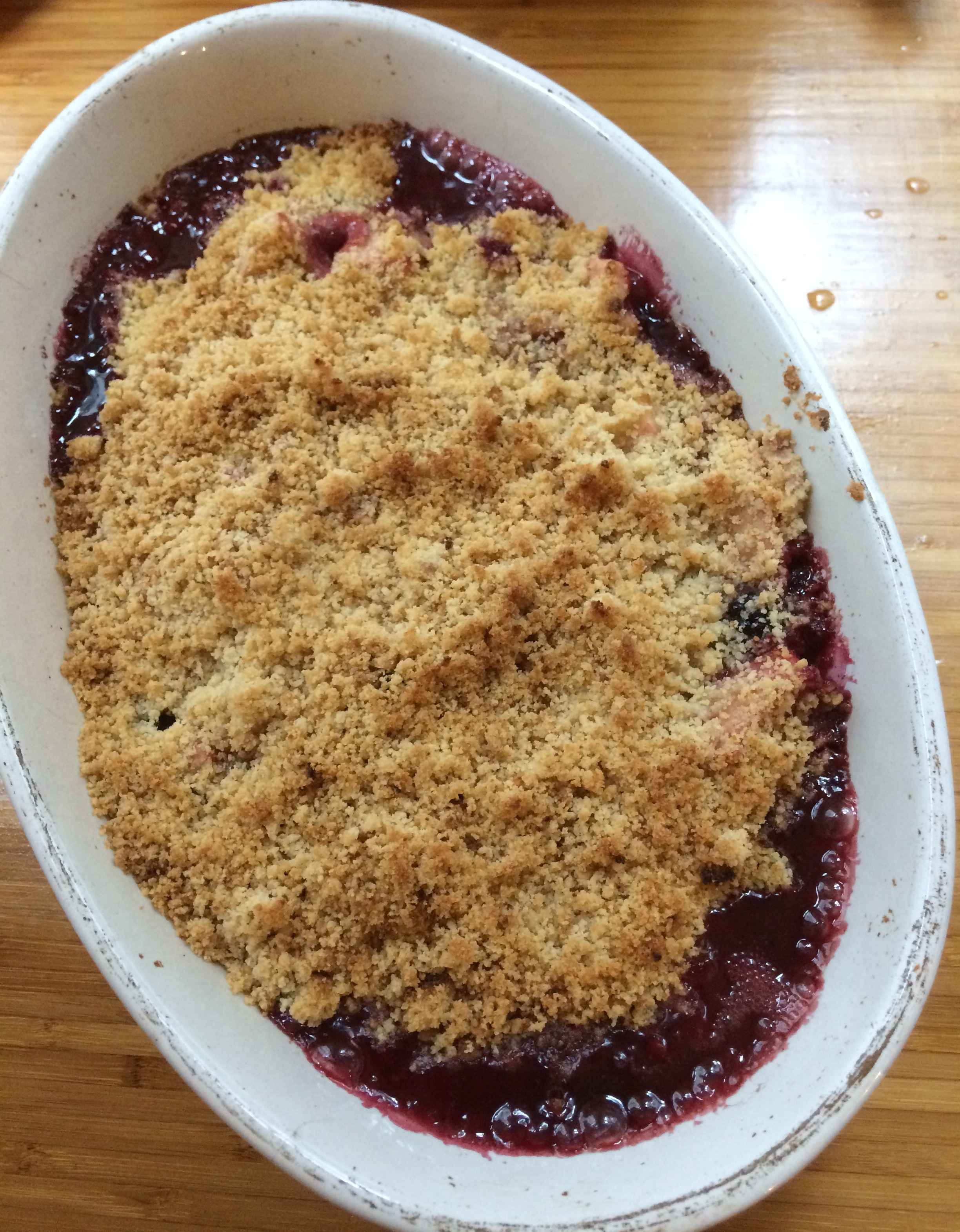 finished blackberry and apple crumble
